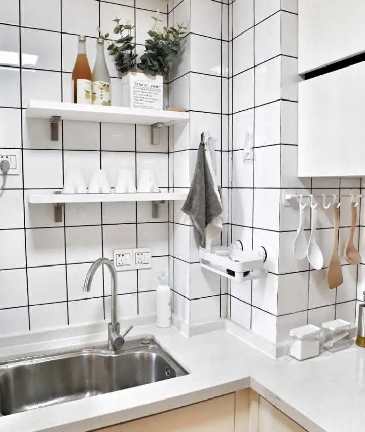 现在免打孔安装的架子、挂钩等也是应有尽有,粘力也足够。不上墙面的前提下进行布局调整还是很不错。