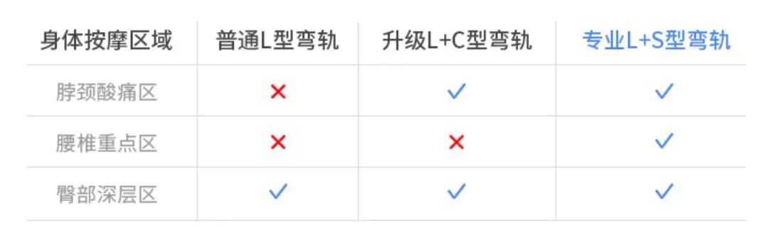SL型导轨能更贴合人体曲线,不会有腰部按摩不到的情况出现,按摩舒适度更佳,体验好。