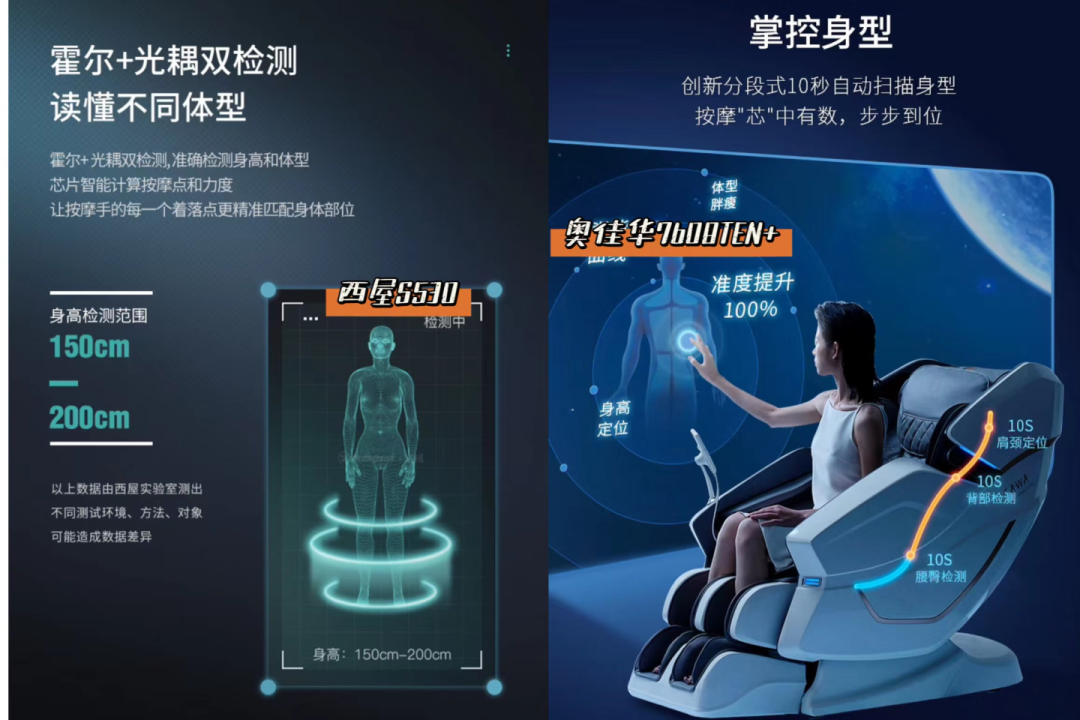可以避免无效按摩,在智能体型检测后,按摩椅能对每一个人的身高、体型有大致的掌握,按摩时可以针对性进行定点施压,使用体验更好。