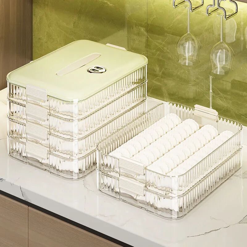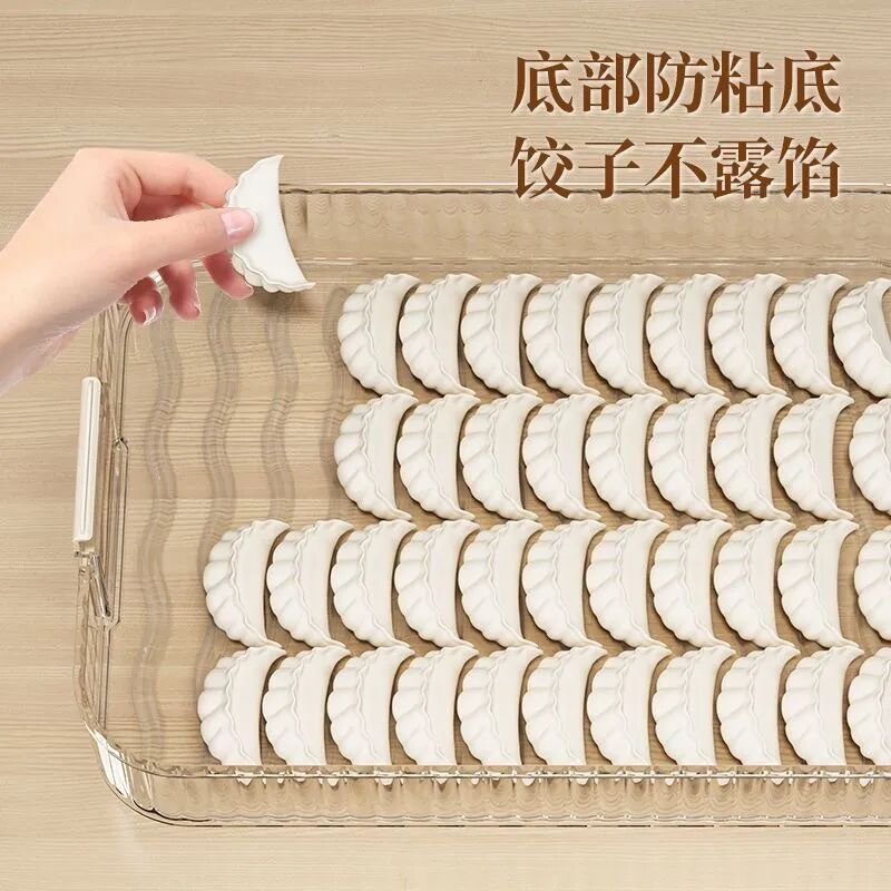 现在包好就直接放在饺子盒里,层层叠放,吃完一层再拿,方便拿取又卫生干净。