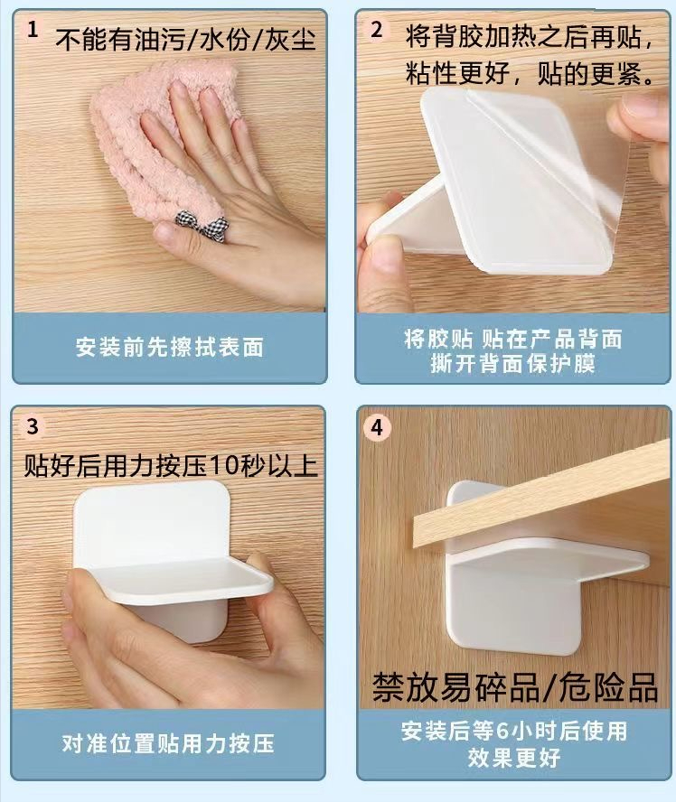 新装修房子,舍不得打孔的,可以将它直接贴在墙上。