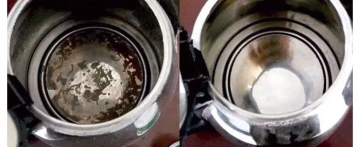 倒一袋柠檬酸进烧水壶里,热水冲泡,过会儿再去看水垢就已经漂浮在水面上了~