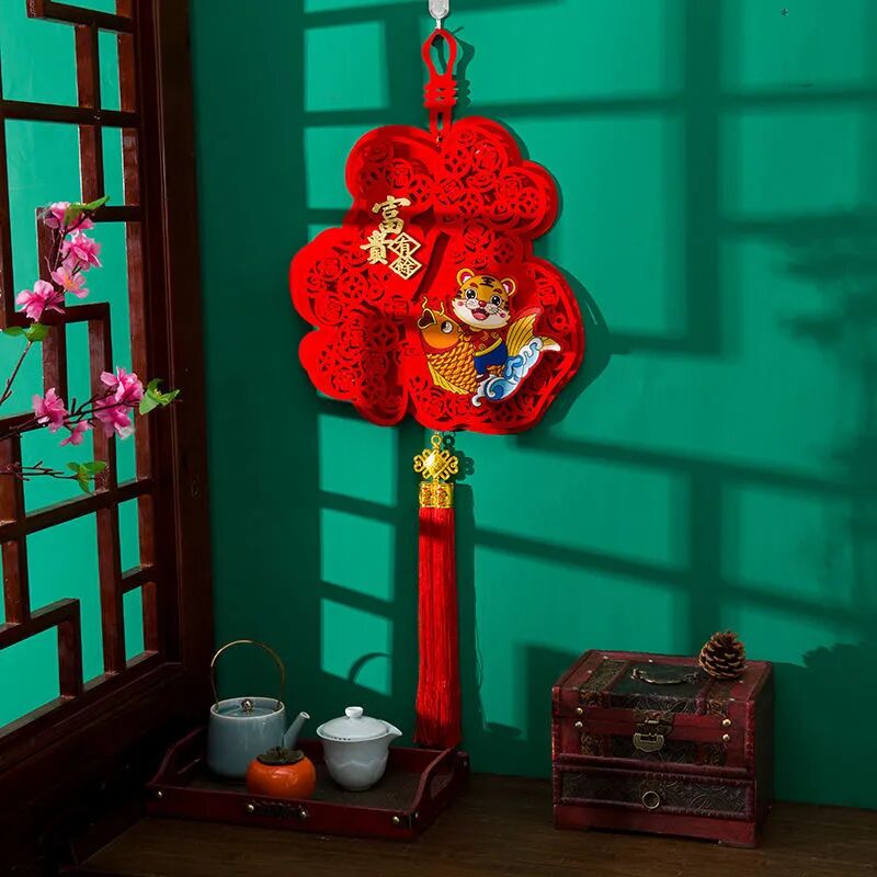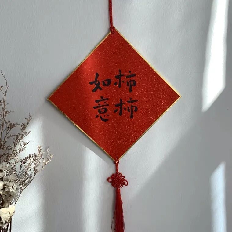 墙壁挂件以福字居多,但近年又多了些活泼俏皮的款式,文字选择也不用仅仅局限于大红福字,多了一些对生活的美好愿景~