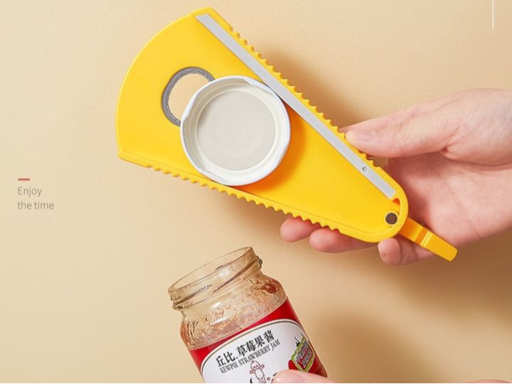 啤酒、易拉罐、甚至连罐头盖子也不在话下。V口设计,且带了防滑硅胶条,2-6厘米以内的盖子都能轻松开启。尖头部分用来撬开易拉罐盖子也巨好使。指甲终于保住了!