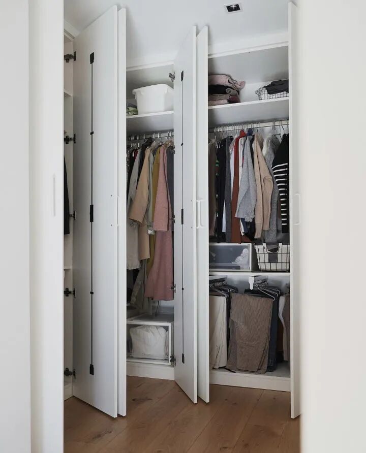 定制衣柜的好处在于衣柜与屋顶上方不留空隙,杜绝了藏灰和清洁这道工序!既美观,收纳空间也增加了不少!