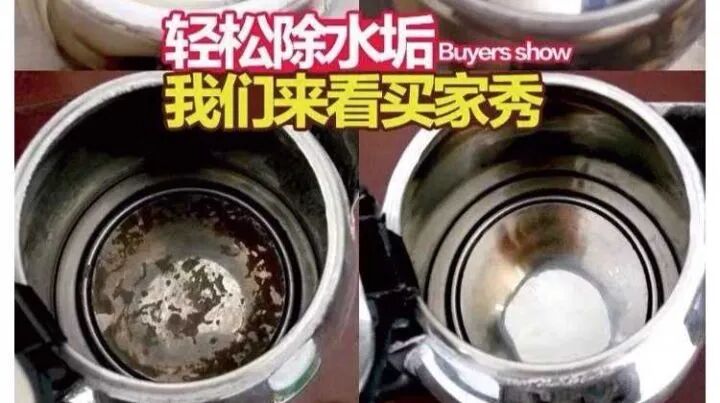 但只要有柠檬酸,这些都不是事儿,一袋柠檬酸下去热水泡几分钟,水垢直接浮起来!绝