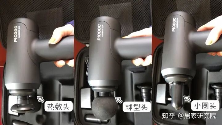 三个按摩头各有好处,热敷头可以边热敷边按摩,温度可调,天凉了按摩起来更舒服 ;
