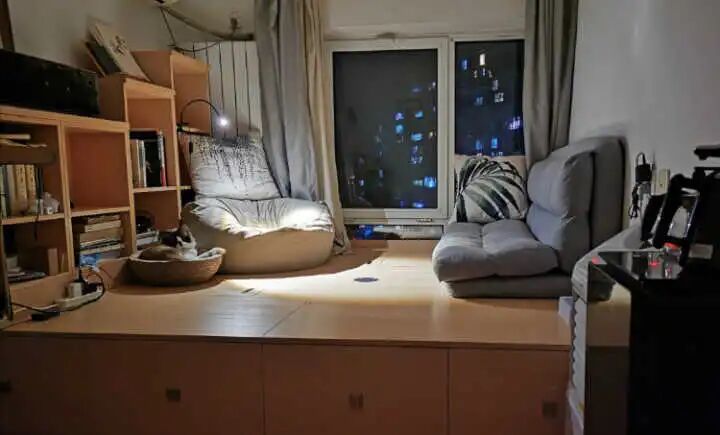 对于一室一厅寸土寸金的小户型来说,榻榻米真的非常实用,尤其是带门榻榻米,几乎多出一个小卧室来!
