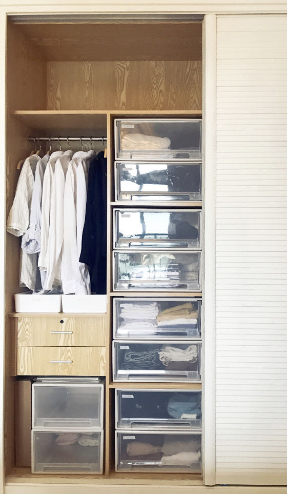 1、内侧四个柜子:不常用的被褥装压缩袋、需保存的包装盒、纪念品、需保留的儿童用品及玩具、