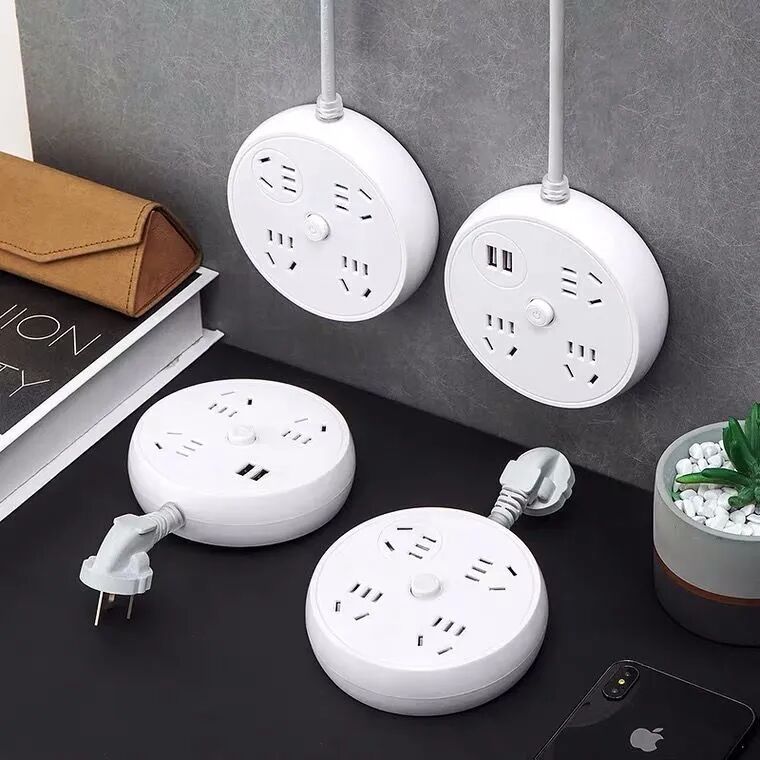 圆盘型:带总控,不用电时关掉总控即可,避免小孩触碰或者浸水引起的危险。带延长线,必要时可以做个插线板来用。插孔多样,带USB、双孔和三孔足以满足基本需求。