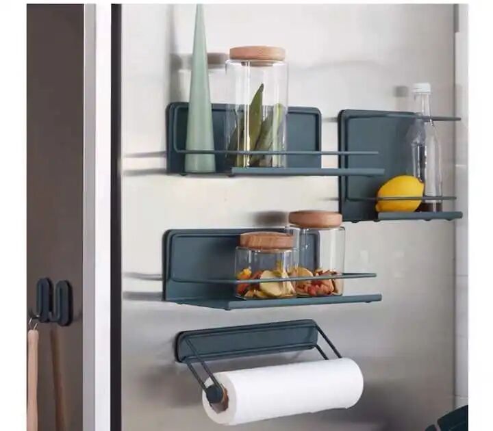 利用磁吸安装的冰箱置物架,一方面增加了收纳空间,另一方面也让所有的东西都物尽其用,还了自己一块干净的台面!