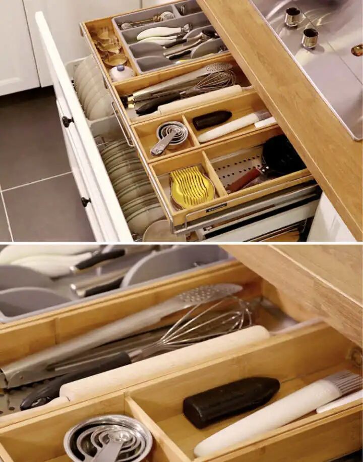 3.5种厨房抽屉内部收纳工具,细分空间和竖放一步到位: