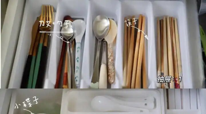 利用工具细分空间!收纳榜样都知道,筷子、刀叉、勺子分开收纳拿去的时候会更方便!