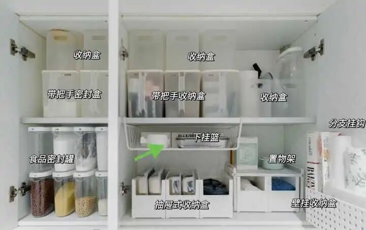 遇到储物柜上方空间浪费的情况,下挂篮一定是最好的选择!