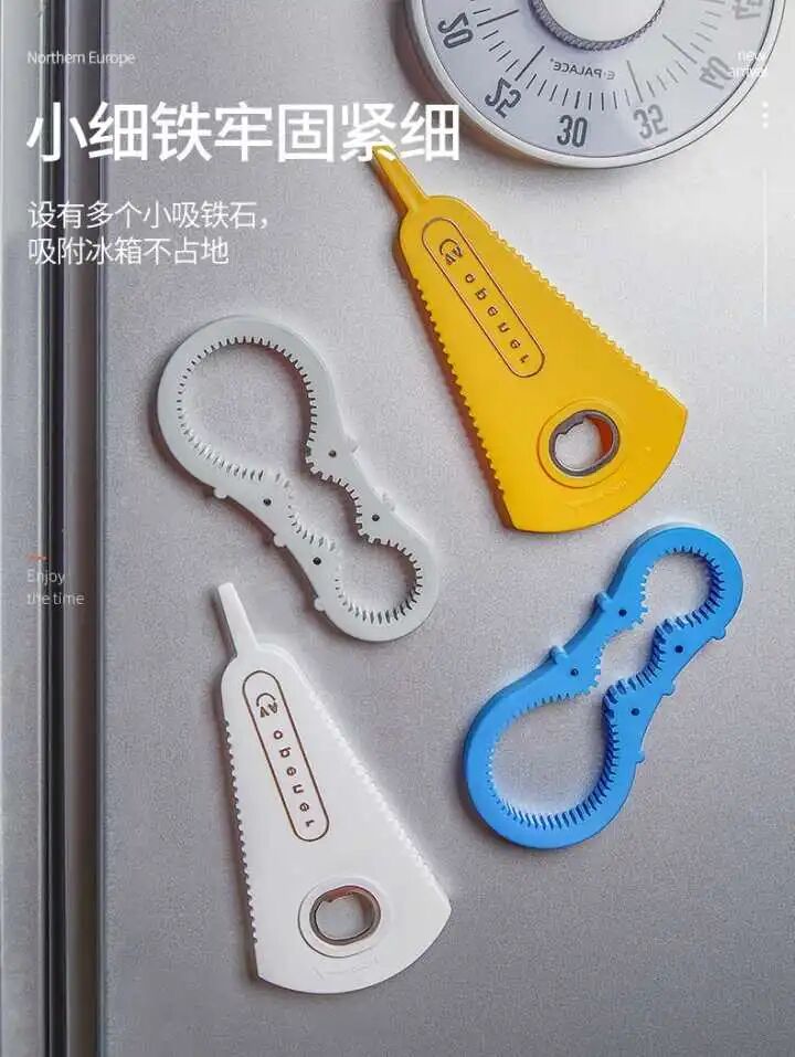 比如利用磁吸收纳的万能开瓶器,啤酒、易拉罐、罐头盖子都不在话下,要用的时候找起来也是非常方便!