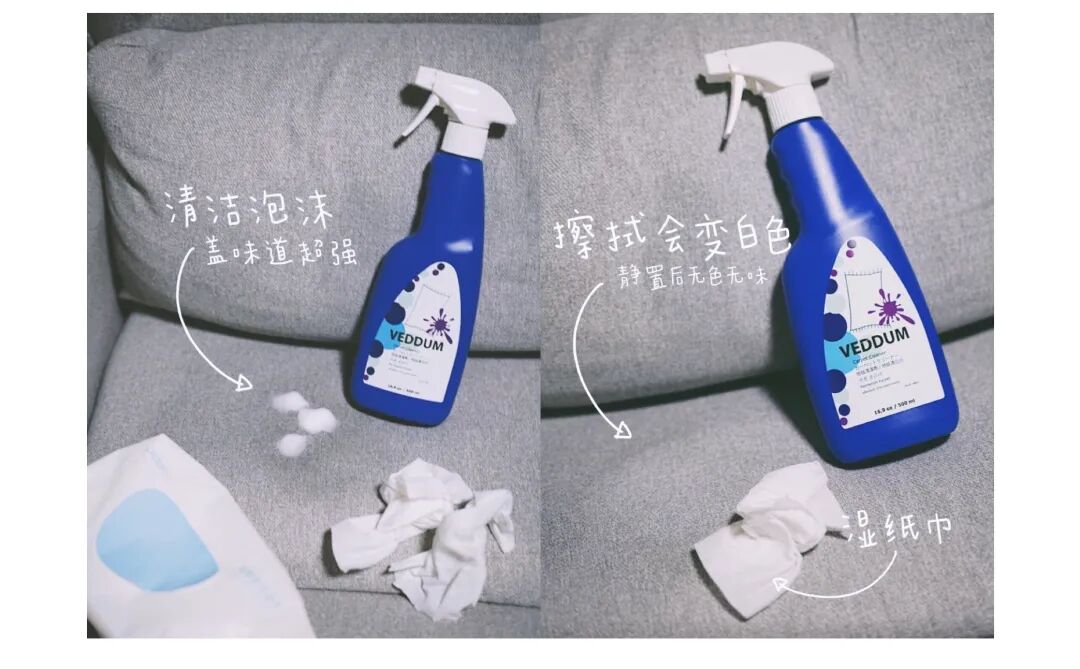 IKEA的沙发清洁剂喷下去一抹,黄色瞬间退掉,味道也没有了!!!超级惊喜的我,赶紧擦擦擦……