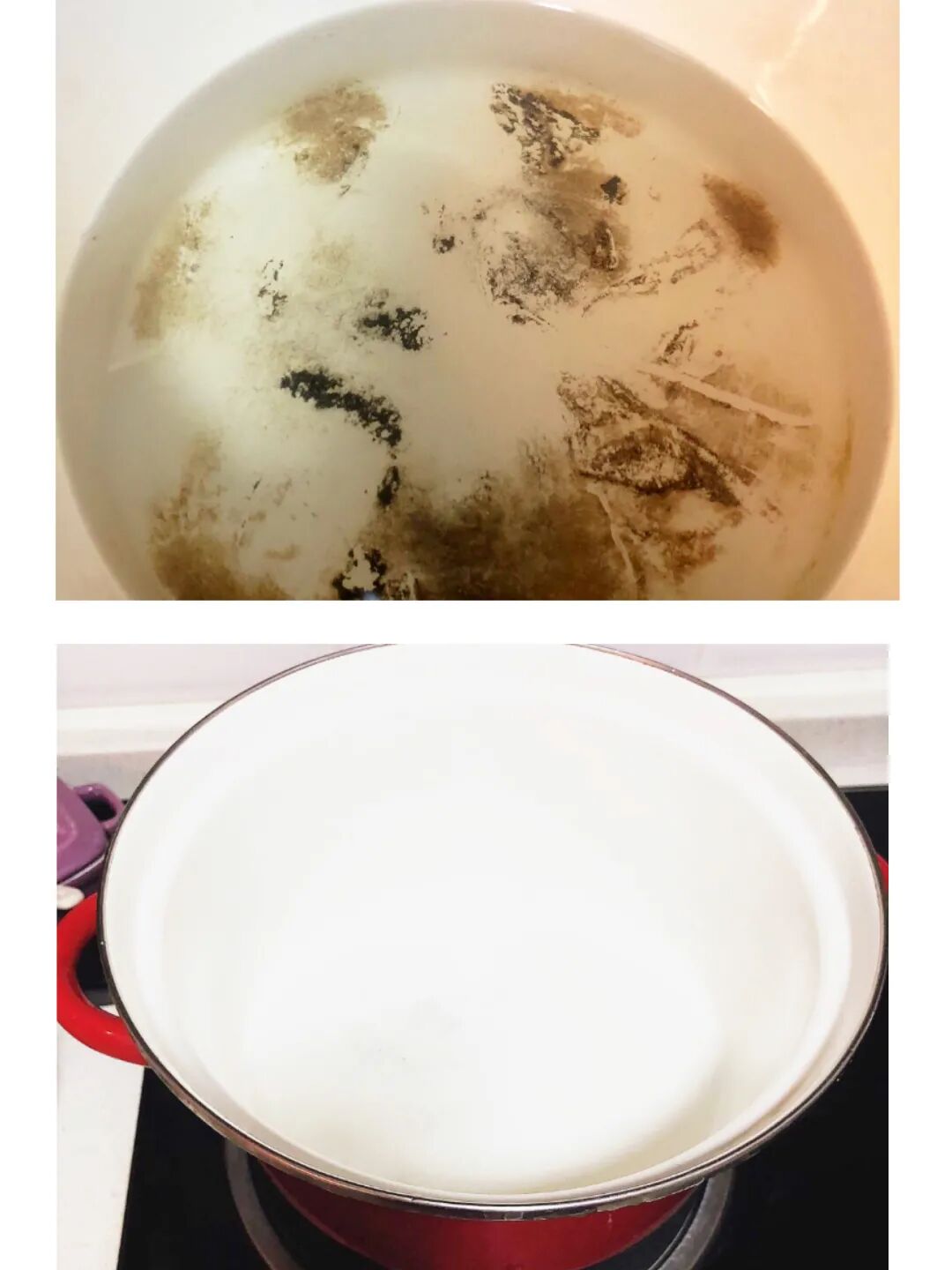 家里烧糊的锅不要急着放弃,倒半瓶白醋,加水,煮沸,倒掉,然后擦擦擦......