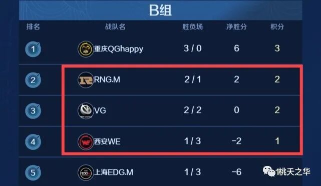 RNGM只要不是被大比分击败,就可以稳获卡位赛资格。VG与WE真的可惜了。