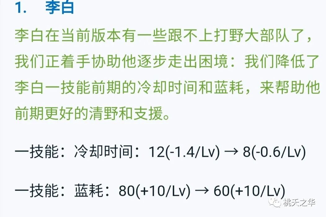 但是如今的野区经济,并不比边路有优势,李白在野区发育的空白期依然很长,但是李白又不适合边路,所以仅仅是一技能CD的减少,并不能让李白快速度过空白期。