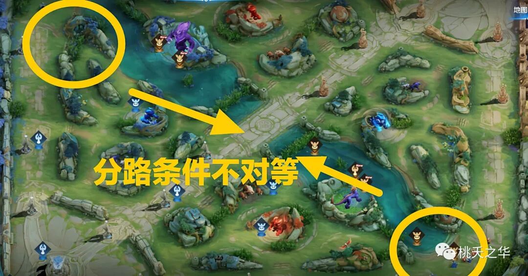 其实这种双边路战士打法,在很久之前的版本中就出现过,那是王者峡谷地图还是镜像模式的版本,双边路的地形、草丛、兵线金币全部相同,也就是说不管是上路还是下路,在一定时间内,没有外界因素干扰的话,英雄发育的速度是对等的。