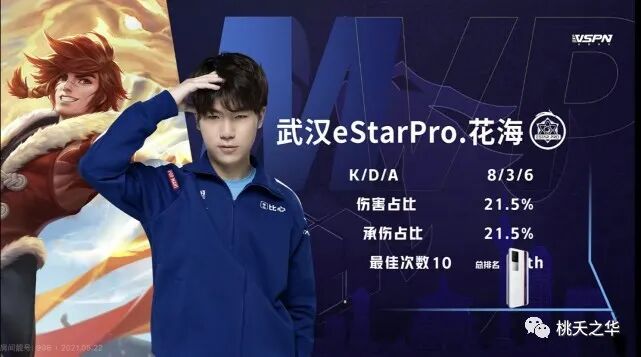 武汉eStar可以在S组三战全胜,花海功不可没,作为战队的主核心,花海掌控着全局的节奏,虽然在对战广州TTG的时候掉点有点多。