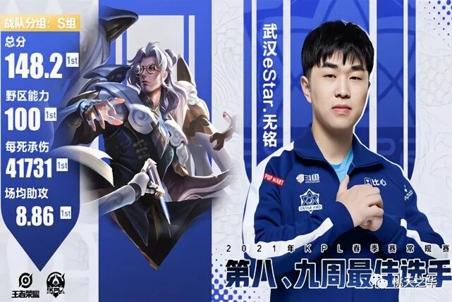 在上一次武汉eStar霸榜周最佳阵容的时候,唯独无铭缺席了,而这一次无铭终于上榜了,而且这也是本赛季除了AG超玩会爱思之外,第二位上榜周最佳选手的选手。