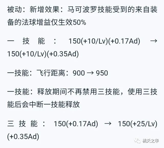 本次调整,虽然降低了普攻法球伤害,但是一技能的距离提高,技能AD加成,灵活性调整,把马可波罗本体的伤害,已经提高到了其他射手的水平,但是马可波罗的技能机制却保留了,机动性,以及技能法球效果。不过出装上,不能采取之前的叠加攻击速度了,要攻击速度与物理攻击合理搭配。