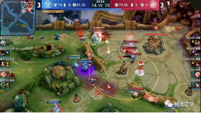 巅峰对决是不用禁止英雄的,所有的英雄可以随便选择,而且对战双方可以选择同样的英雄,所以巅峰对决中,战队都会拿出自己最稳定的吃分体系,佛山GK的吃分体系就是梦岚的公孙离,而公孙离最好的搭档就是大乔。