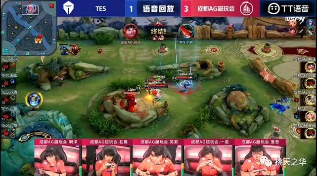 第六局比赛,AG超玩会也尝到了被翻盘的滋味,TES在三路高地被破的情况下,成功抓住就笑影掉点的机会,打出了一波0换5,完成了大逆风翻盘。
