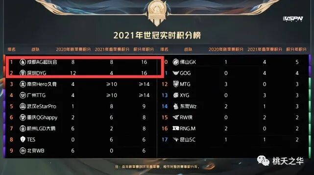 AG超玩会获得了本次春季赛的第三名,所以如今的积分达到了16,而DYG是去年的秋季赛冠军,所以积分也达到了16分,排在16分之后的是Hero久竞与广州TTG,不过这两支战队的积分还没有确定。