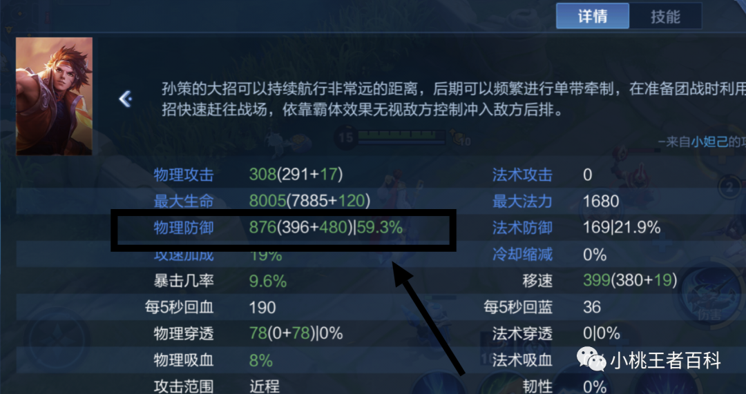 孙策之所以在对抗路有着很高的强度,除了二技能前期抢线的优势之外,还因为强大的被动护甲加成,在初期孙策被动护甲叠满之后,可以获得200点物理防御,而到了后期,孙策的被动满层护甲可以达到了480点,也就是说,孙策不需要一件物理防御装备,就可以拥有坦克英雄的物理免伤。