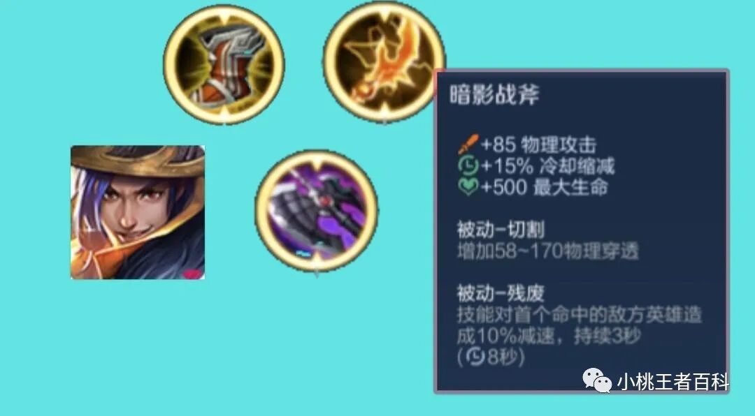 第四件装备,选择暗影战斧,增加穿透以及冷却缩减,加快刘备一技能与二技能的释放频率,从而打出更高的输出,此时刘备的移动速度已经达到了500多点,在支援能力上已经成型。