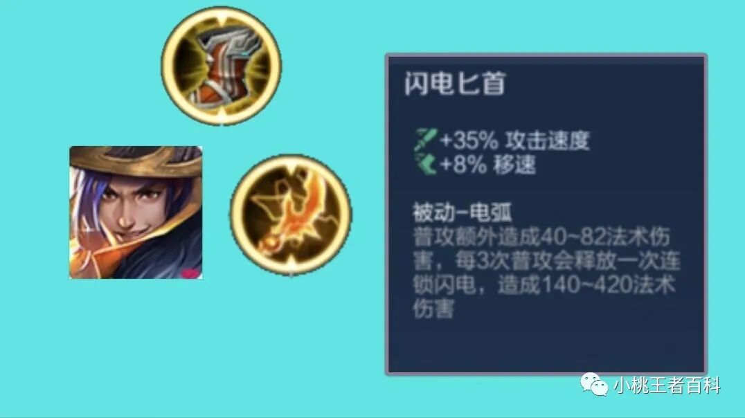 第三件装备,选择闪电匕首,因为刘备的被动可以叠加物理穿透,在前期英雄物理防御未成型的时候,刘备的被动穿透已经足够,所以此时装备暗影战斧的性价比不高,拥有攻击速度加成,移动速度加成,以及被动法术伤害的的闪电匕首是一个不错的选择。