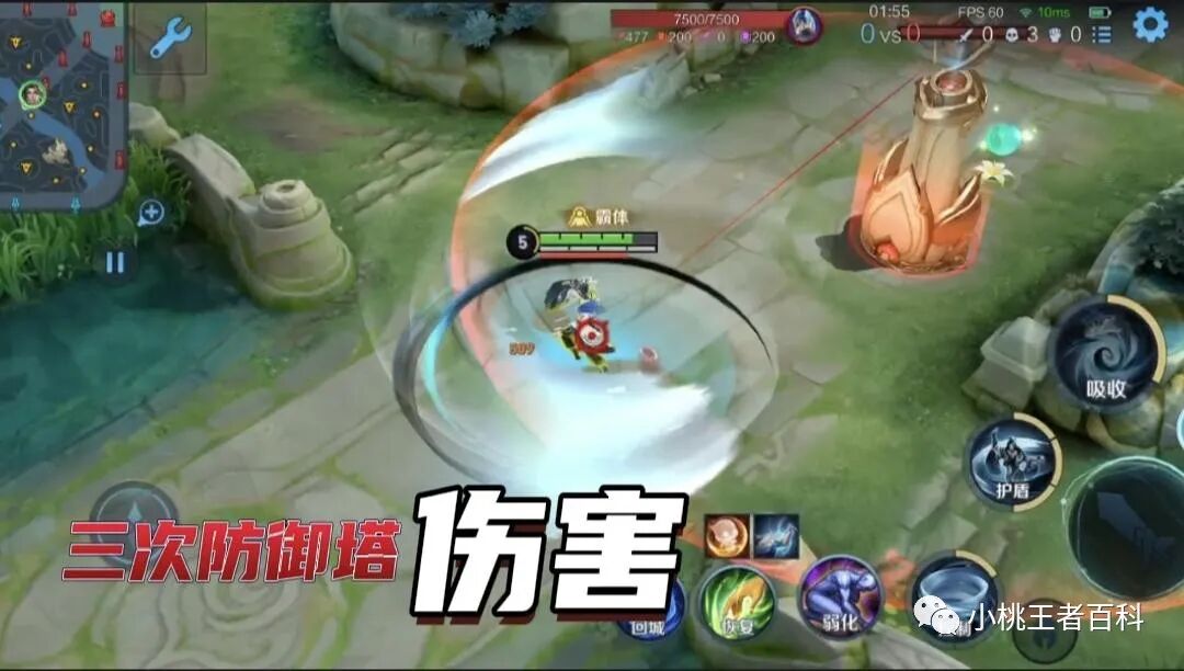 赵怀真开启三技能,可以吸收三次防御塔伤害,然而开启三技能,并且开启弱化之后,我们会发现,赵怀真三技能却只能吸收两次防御塔伤害了,吸收上限明显变低了。