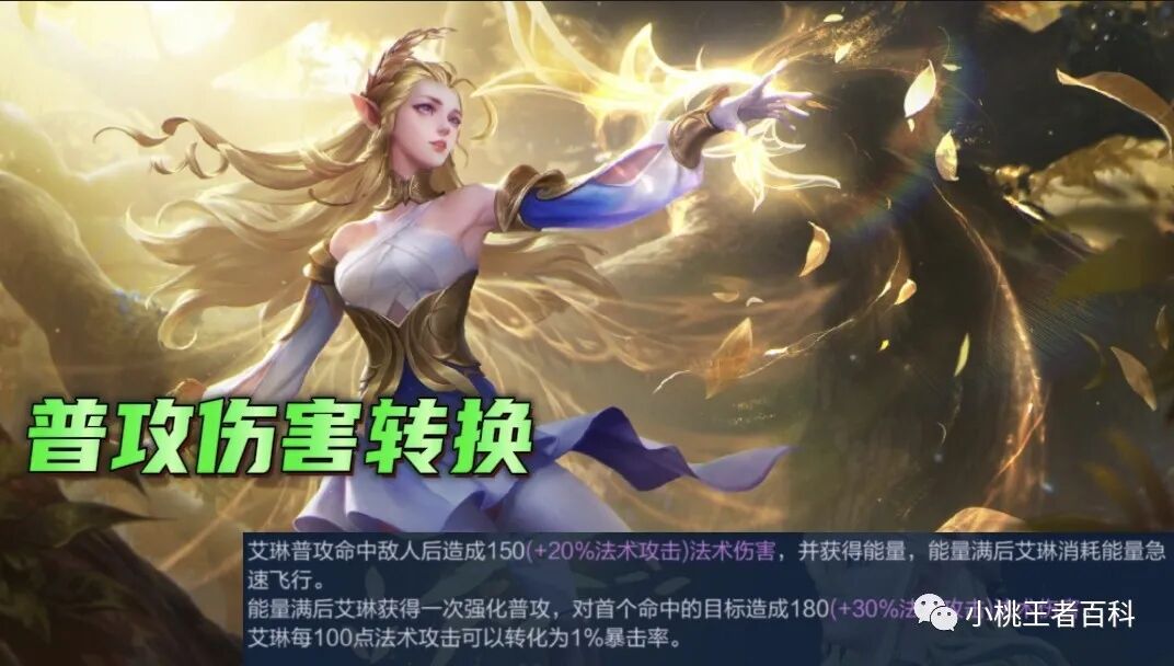 因为艾琳一位法术射手,所以没有基础物理攻击以及成长属性,因此艾琳的普攻伤害转换中,没有物理加成,而是基础伤害+百分比伤害加成,并且可以暴击。