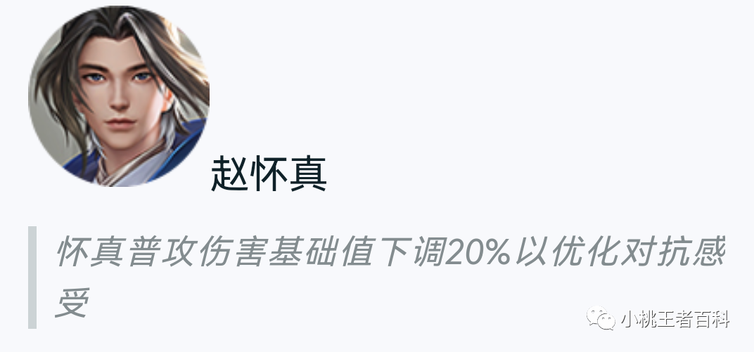 对于当时赵怀真的被动四次普攻调整,多数玩家认为是削弱,毕竟这种递增伤害的方式,让赵怀真的卡双A,卡三A打法无法实现了,赵怀真想要打出高伤害,只能一次性打满四拳。