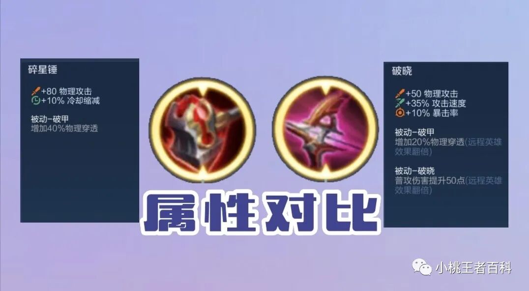 在装备的属性上,碎星锤拥有百分之40穿透,同时还有物理攻击与冷却缩减,相比于破晓,虽然属性的增益不高,但是却更适合蒙犽与孙尚香,最关键的是成型快,在蒙犽与孙尚香的中期输出薄弱是,碎星锤的物理攻击与穿透,可以提前让蒙犽与孙尚香获得处理前排的能力,同时又不失对后排的威胁。