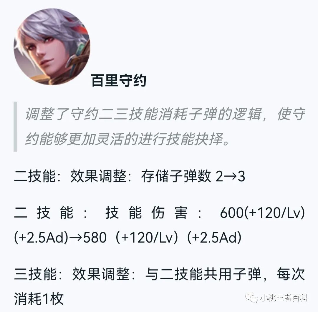因此百里守约再次进行了调整,回调了二技能的子弹数量,由2颗增加到了3颗,但是为了平衡强度,百里守约的三技能也进行了调整,一同共享二技能的子弹。
