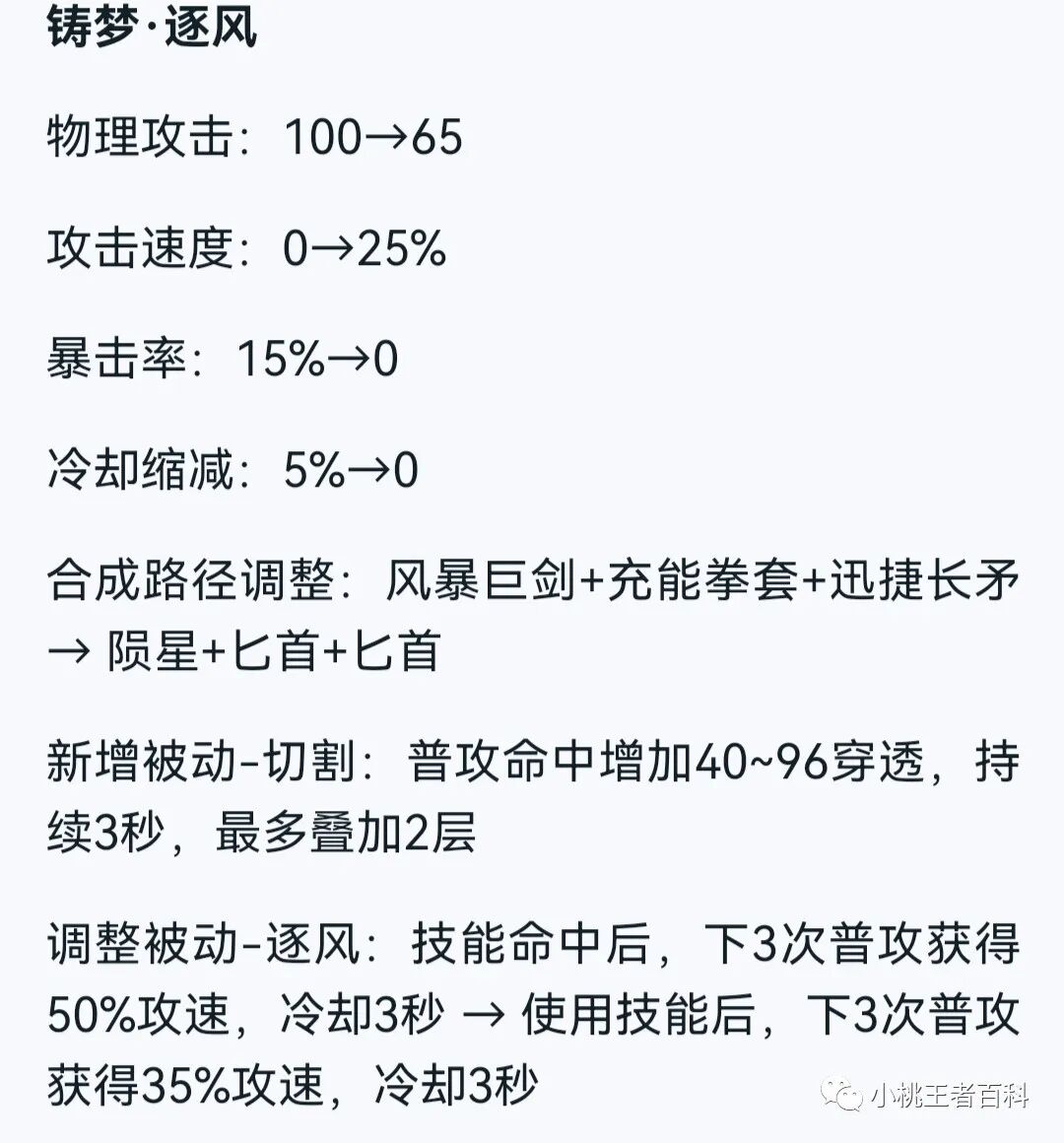 新版的铸梦逐风,降低了基础物理攻击,同时移除了冷却缩减与暴击,但是却增加了攻击速度。