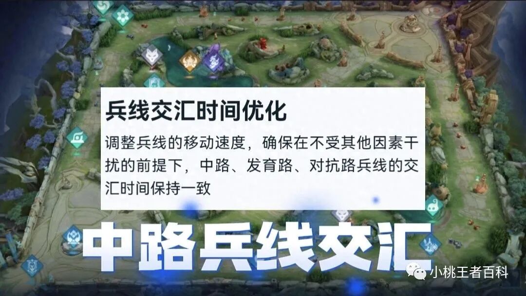 中路兵线交汇时间提前,从全局来分析,中路有得有失,工具人法师得,其他类型法师失,对抗路战边有影响,坦边没有影响,打野位全类型打野都收益,而发育路原封不动,无得也无失。