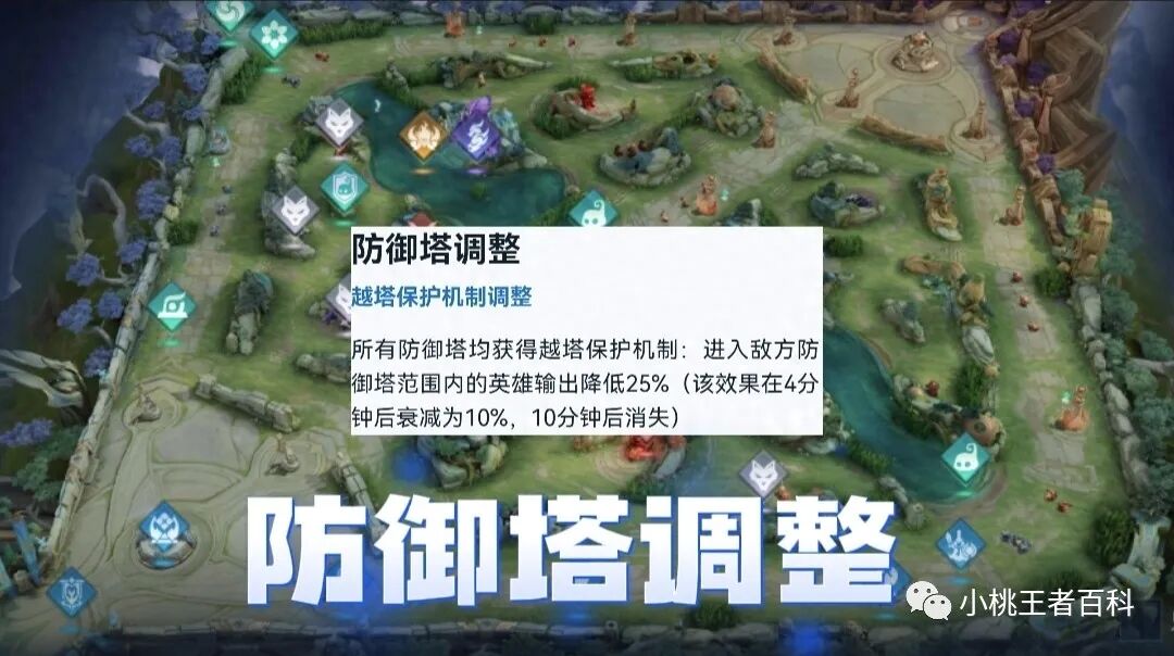 第一:防御塔保护机制提升,不仅全部防御塔增加了免伤保护,而且还增加了兵线减速机制,如此一来,王者峡谷的节奏必然会出现变化。