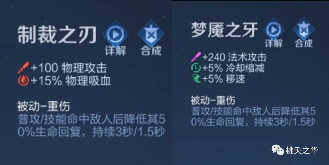 制裁之刃与梦魇之牙的被动效果,可以有效地降低英雄的回复,虽然这两件装备的效果是唯一被动,同一位英雄同时装备无法生效,但是队伍两人装备,被动效果是可以生效的。