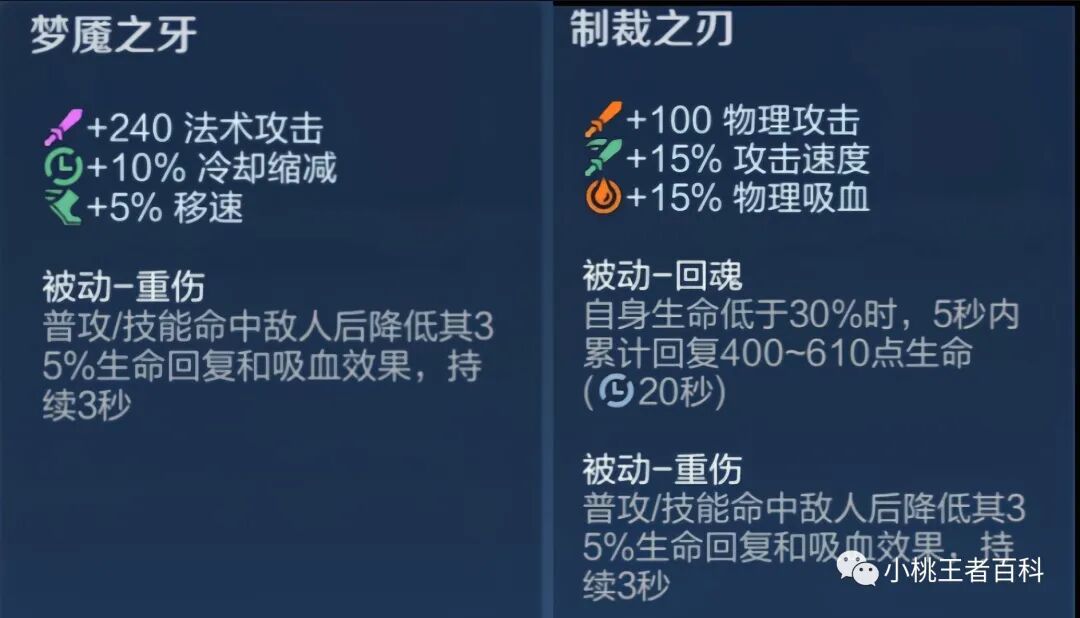 虽然制裁之刃与梦魇之牙,都增加了适合射手与法师的基础属性,但是这改变不了制裁之刃与梦魇之牙功能型装备的特性,所以这两件装备的精髓,依然是重伤效果。