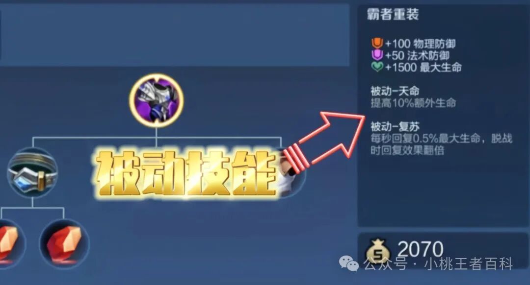 新版霸者重装的被动,其实有点类似于法术装备中的圣杯。可以极大的提升英雄的承伤以及线上能力。