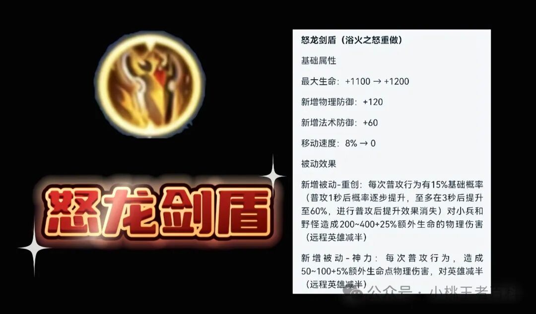 在S35赛季,王者峡谷有两个装备改版,其中怒龙剑盾的改版,确实值得眼前一亮,并且吸引了大部分玩家的关注,但是大家关注怒龙剑盾的同时,也千万别忽视了霸者重装的改版。因为这件装备,也很有可能掀翻坦克以及辅助英雄的强度格局。