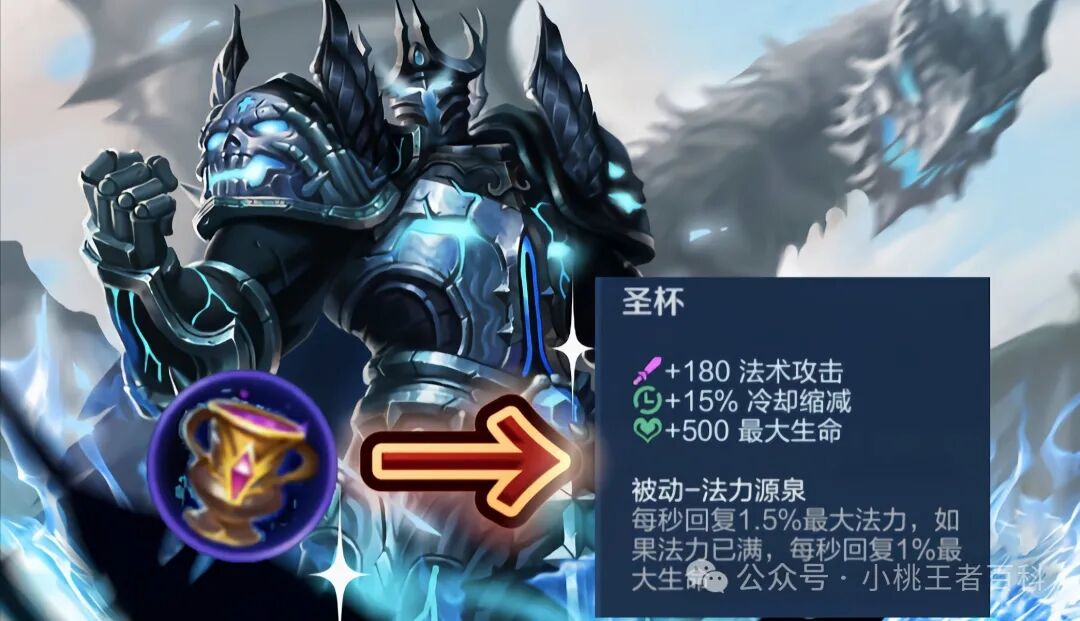 同时圣杯的被动,可以回复最大法力,而且在法力值满之后,每一秒可以回复百分之1最大生命值,而亚瑟没有法力值,所以圣杯的被动就可以一直为亚瑟回复生命值。