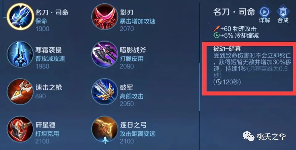 名刀司命的最大特点就是其被动效果,如果单单看名刀司命的基础属性,恐怕连一些装备的小件性价比都比不上,而且被动效果的冷却时间长达120秒,也就是两分钟才能触发一次。