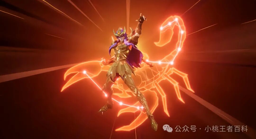 除此以外,黄金天蝎座皮肤的技能设计,也通过与墨子技能的融合,还原了黄金天蝎座的背景故事。