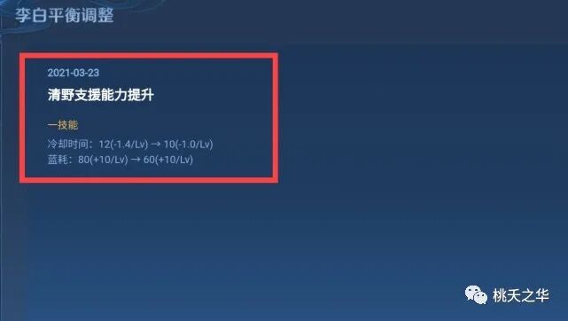 不过在经过尝试以后,李白的调整还是来了,一技能前期的CD降低了两秒,不过为了平衡李白后期的强度,技能升级后的CD提升降低0.4秒,不过总体而言后期的技能CD也是降低了。而且技能的蓝耗也略微有所降低。