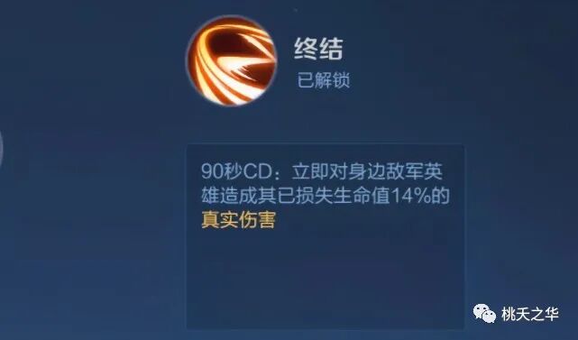 斩杀的作用就是收割,可以对身旁的敌人造成已损生命值的真实伤害,损失生命值越高,造成的真实伤害也就越高,而这个斩杀线大概就在英雄的百分之16生命值左右。